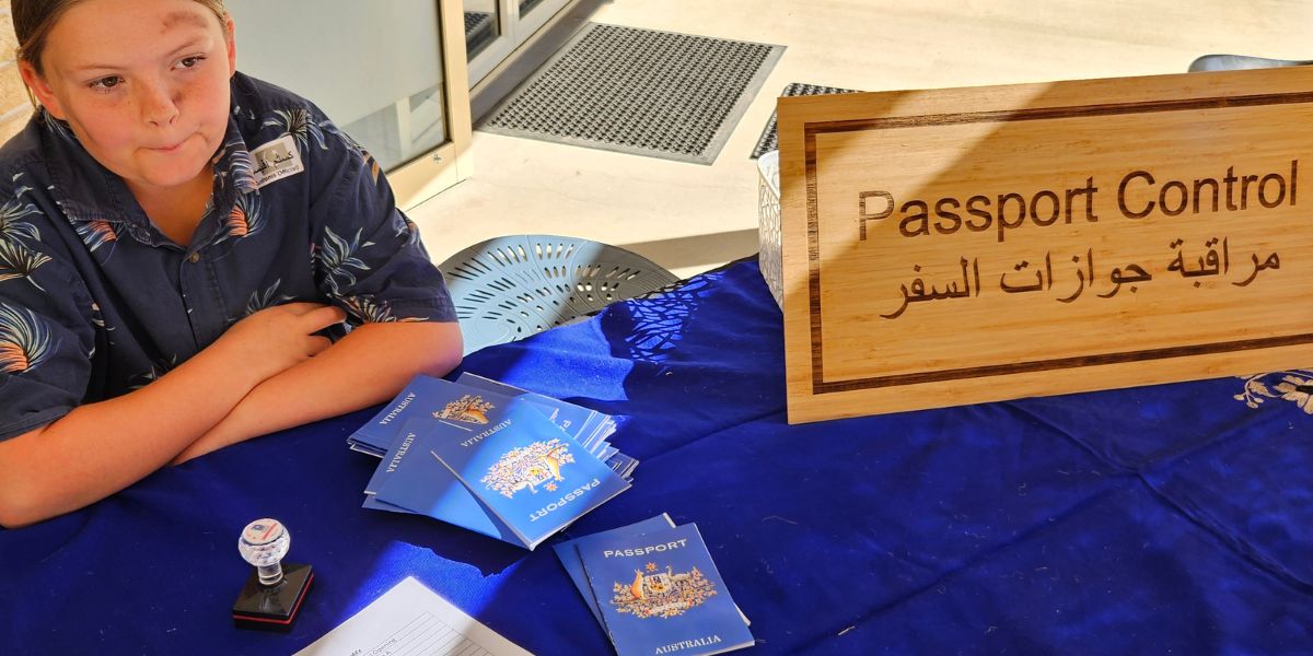 The entire semester learning came to a head in week 9 of term 2 as they transformed part of their school into something resembling a refugee camp. The students and their teachers set up a tent city, hung washing on pieces of rope between 2 buildings and shared the stories of the refugees they researched with parents and other students from across the primary school. There was even a passport control where the younger students could pick up their own passport, get it stamped and then visit other “countries” (the students in the tents telling their refugee stories) and have their passport stamped.